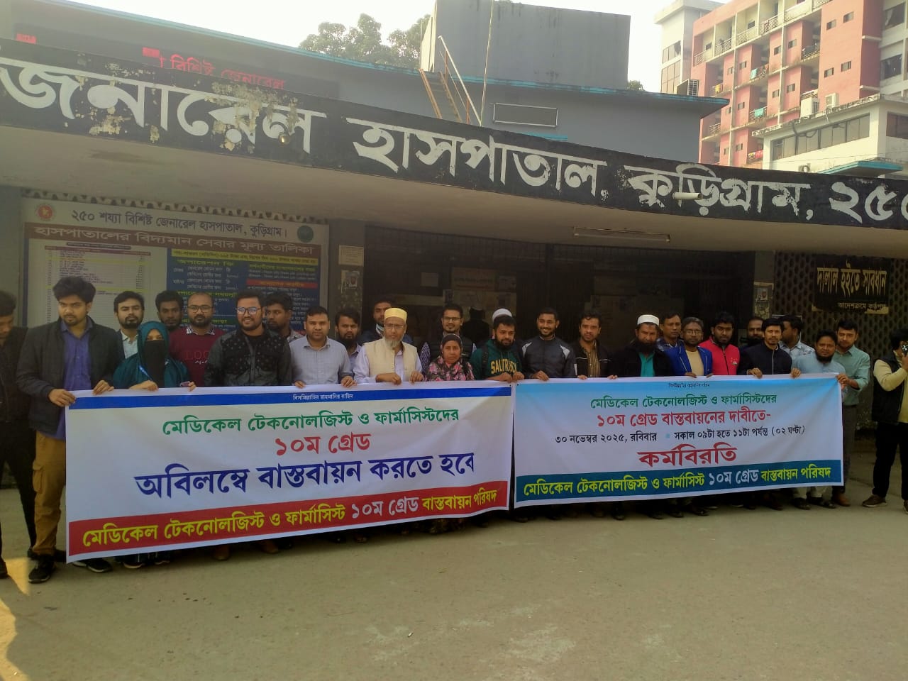 ১০ম গ্রেডের দাবিতে কুড়িগ্রামে মেডিকেল টেকনোলজিস্ট ও ডিপ্লোমা ফার্মাসিস্টদের কর্মবিরতি