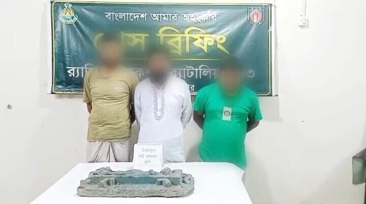 র‍্যাব-১৩ এর অভিযানে ৩৭ কেজি ওজনের কষ্টি পাথরের মূর্তিসহ ০৩ জন চোরাকারবারী গ্রেফতার।