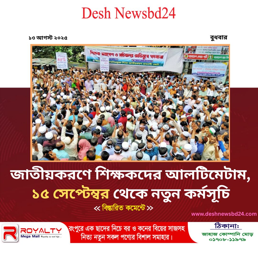 অনলাইন ডেস্ক জাতীয়করণের দাবিতে আন্দোলনরত শিক্ষকরা দাবি আদায়ে ১৪ সেপ্টেম্বর পর্যন্ত সময় বেঁধে দিয়েছে সরকারকে। এর মধ্যে দাবি না মানলে…