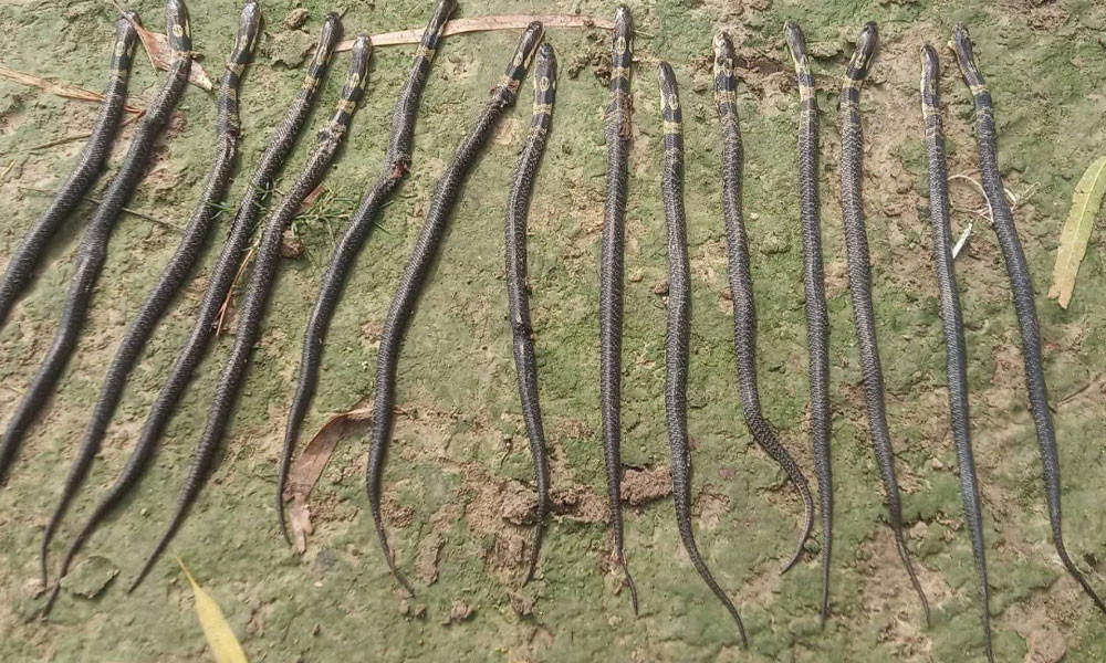 সিরাজগঞ্জে ১৫ কেউটে সাপ পিটিয়ে হত্যা