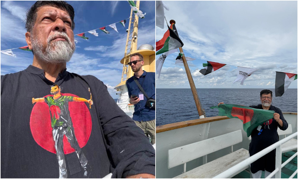 আবু সাঈদের ছবি আঁকা টি-শার্ট পরে গাজার কাছাকাছি শহিদুল আলম